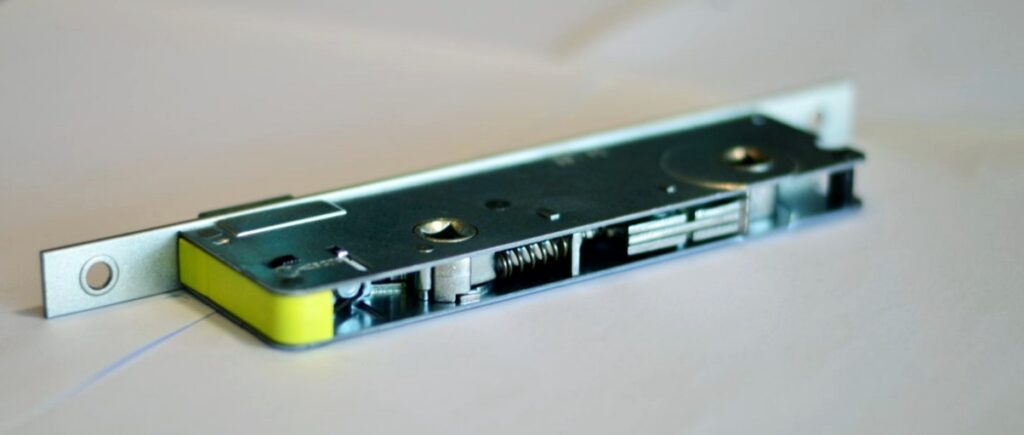 دارای دو زبانه قفلی و زبانه دربی می باشد (زبانه بالا و پایین) که باعث چفت شدن بهتر لنگه درب به چهارچوب می گردد.